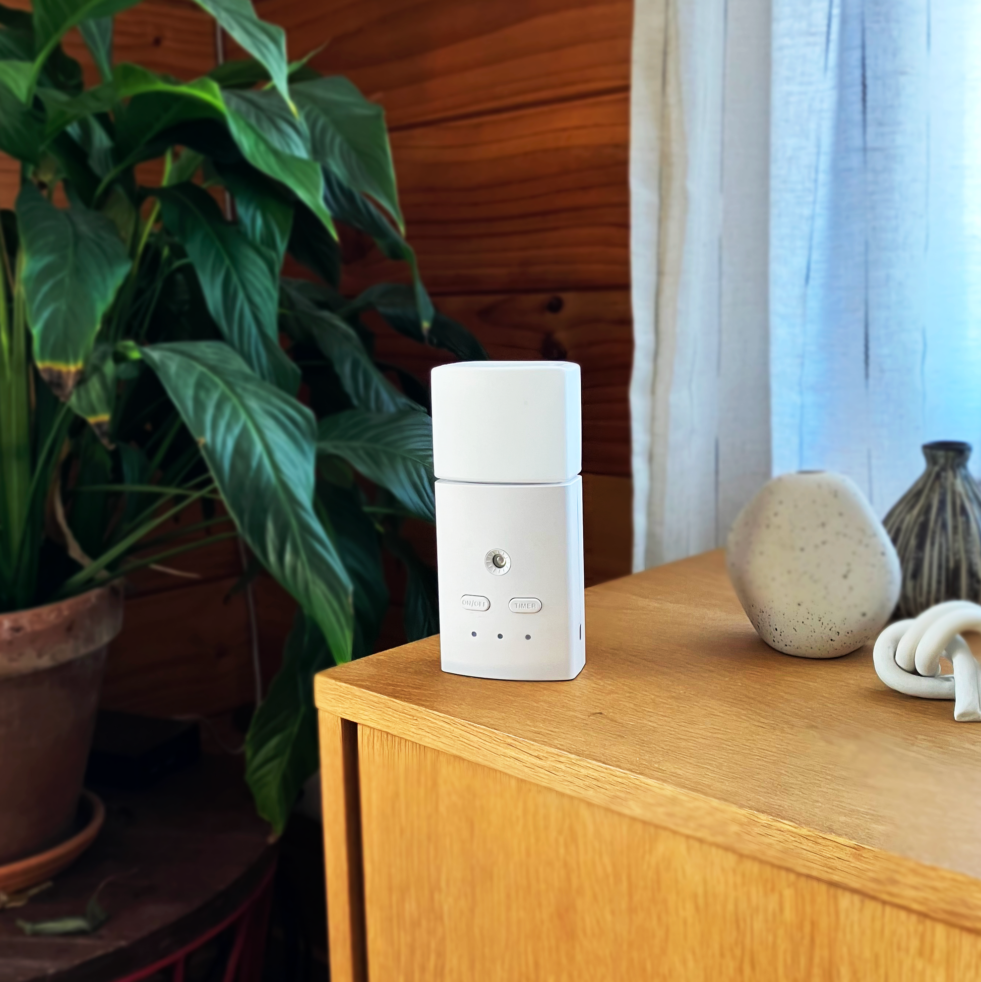The Smell Hound Odour Eliminator dispenses the Synbio® fluid into the air via the ultrasound emitter turning the fluid into a mist.